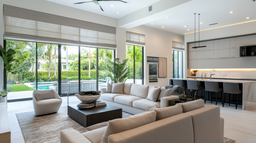 Palm Beach Gardens kitchens often benefit from the simplicity of roller shades. They offer privacy, light control, and a clean, modern look. Choose durable, stain-resistant fabrics that are easy to clean. Customize your roller shades with features like motorized operation and light-filtering fabrics.
