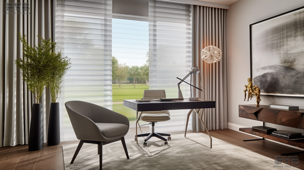 Home office in Palm Beach Gardens with Sheer Curtains, perfect for a productive day.