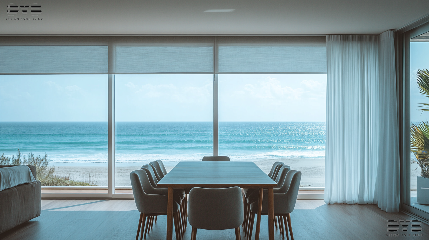 Boca Raton Dining Room with Blackout Curtains, a minimalist haven with breathtaking ocean views.
