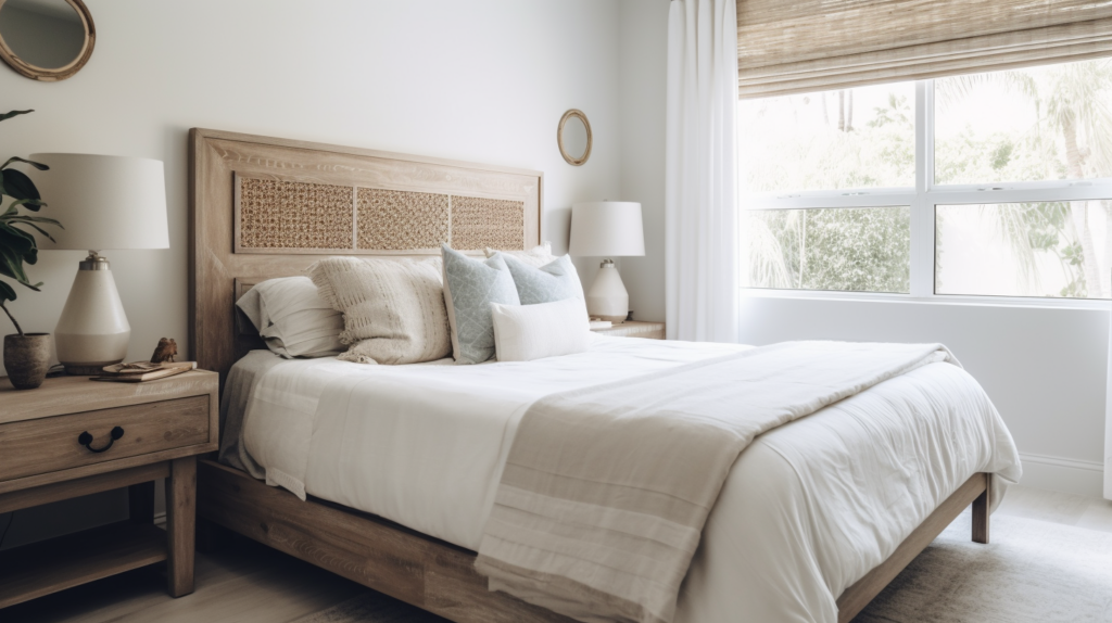 Blackout Roller Shade in a coastal bedroom in Delray Beach, Florida.