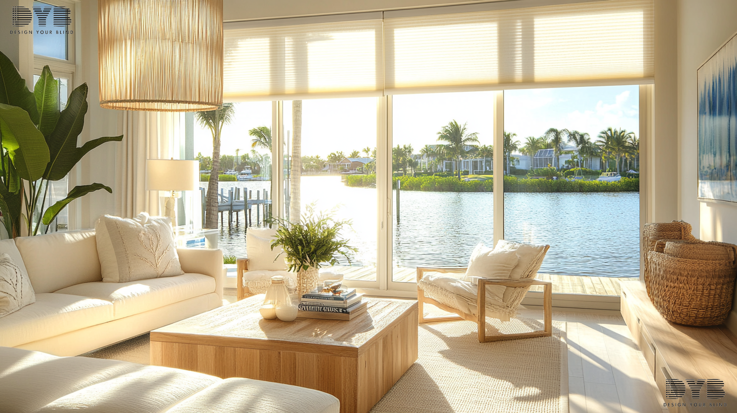Woven wood shades offer a unique blend of natural beauty and practicality. They filter sunlight to create a warm, inviting glow, similar to the sun filtering through Boynton Beach palm trees. With their versatility in materials and designs, they perfectly complement any home’s aesthetic.