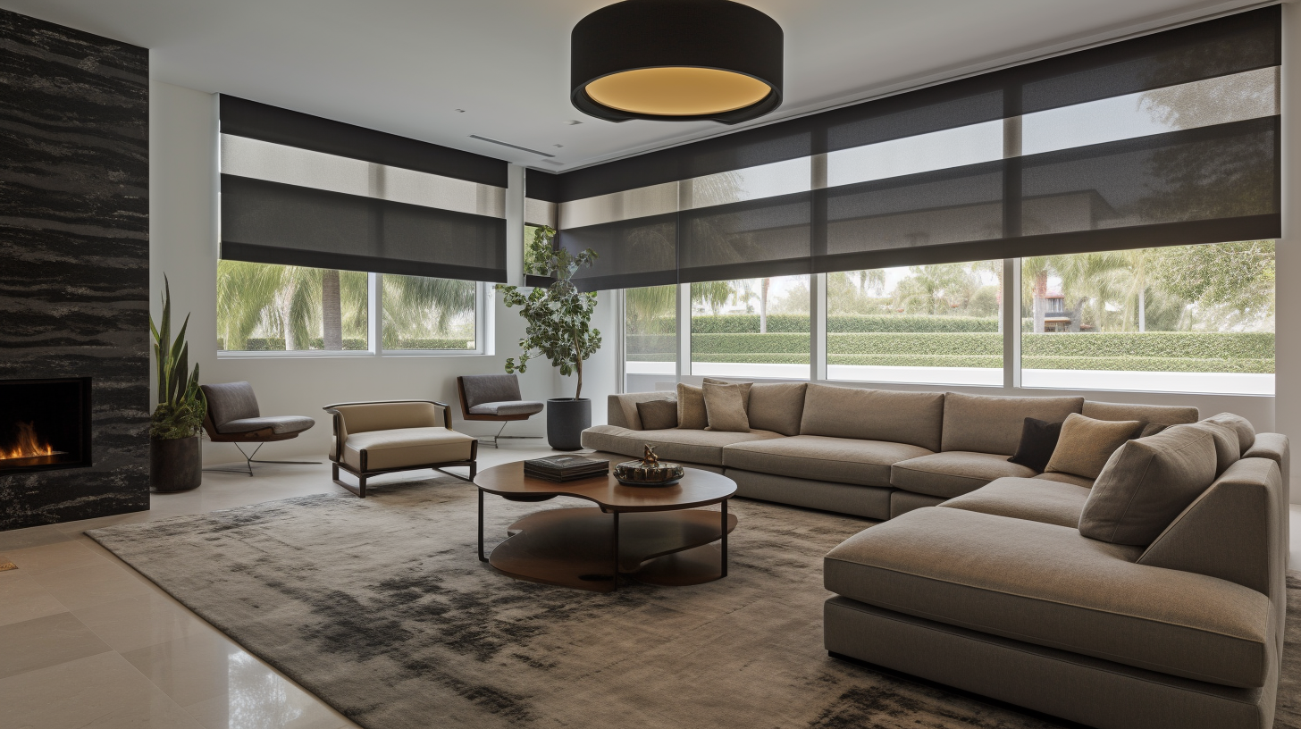 Motorized shades in a luxurious Boca Raton living room, partially drawn to allow soft light to […]