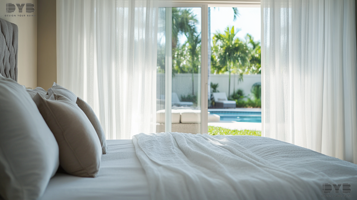 Sheer curtains in Delray Beach homes create a calming, inviting atmosphere. The delicate fabrics, like voile or linen, diffuse sunlight, creating a soft, dappled glow. Their gentle sway adds movement and life to a room, making your living room feel like a peaceful retreat.