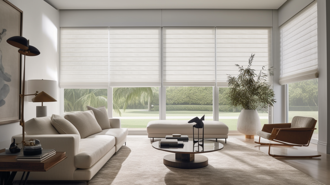 Roman shades are the classic little black dress of window treatments. They’re always in style, blending with any décor. In Boynton Beach, we’re not just settling for timeless elegance; we’re seeking modern convenience and sophistication. Motorized shades offer a touch of luxury and are a smart investment.