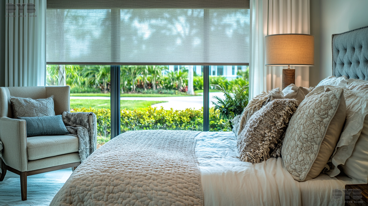 Boynton Beach guest bedroom with blackout roller shades: a haven of comfort and privacy.