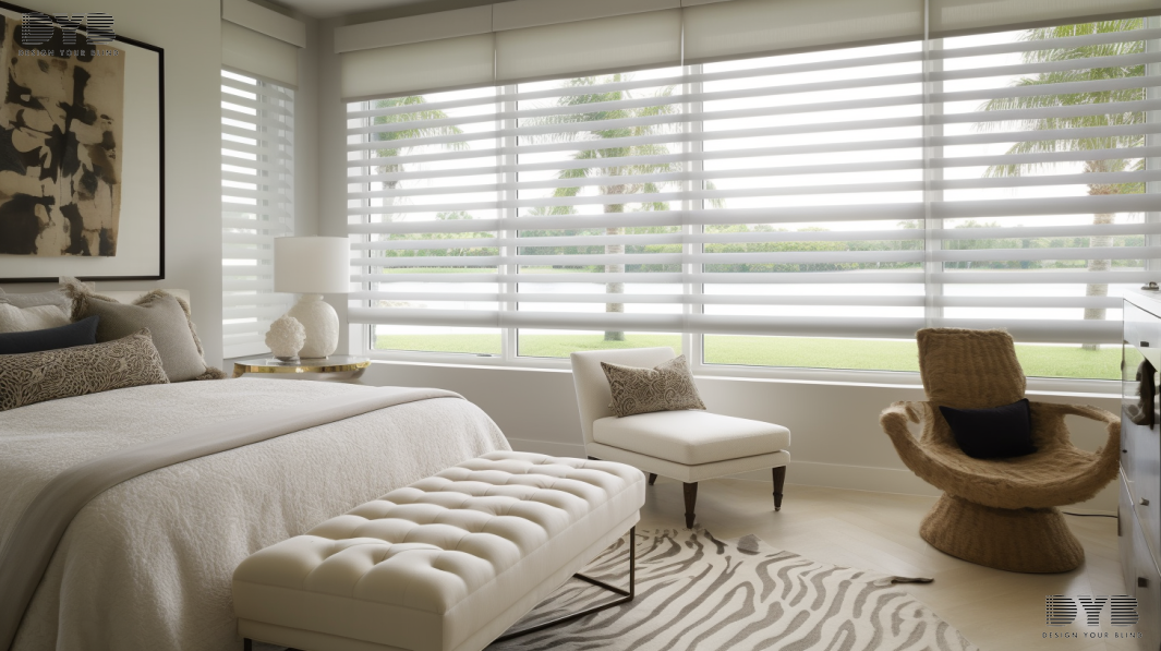 Create a serene retreat in Palm Beach Gardens, FL, with Zebra Shades and a coastal design style.