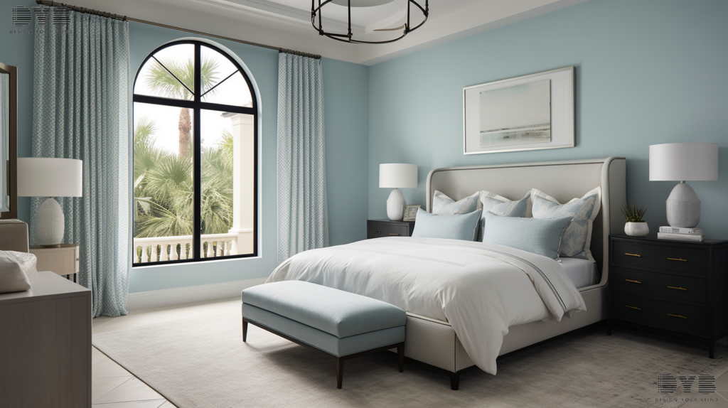 Palm Beach Gardens bedroom with screen shades, offering a serene and stylish haven.