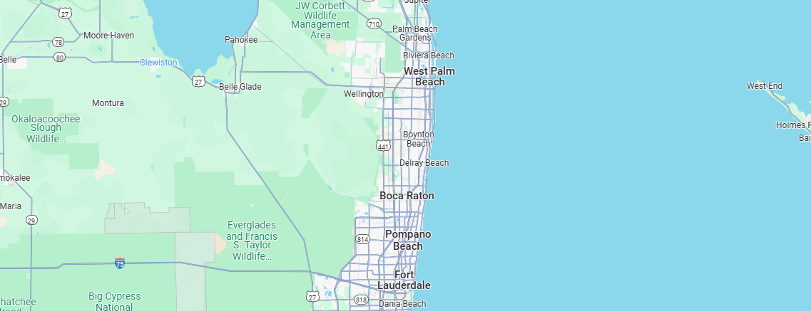 This map illustrates the service areas covered by Design Your Blind, showcasing their reach across neighborhoods in Palm Beach County and north Broward County. The highlighted regions represent areas where customers can enjoy personalized in-home consultations and premium window treatment services.